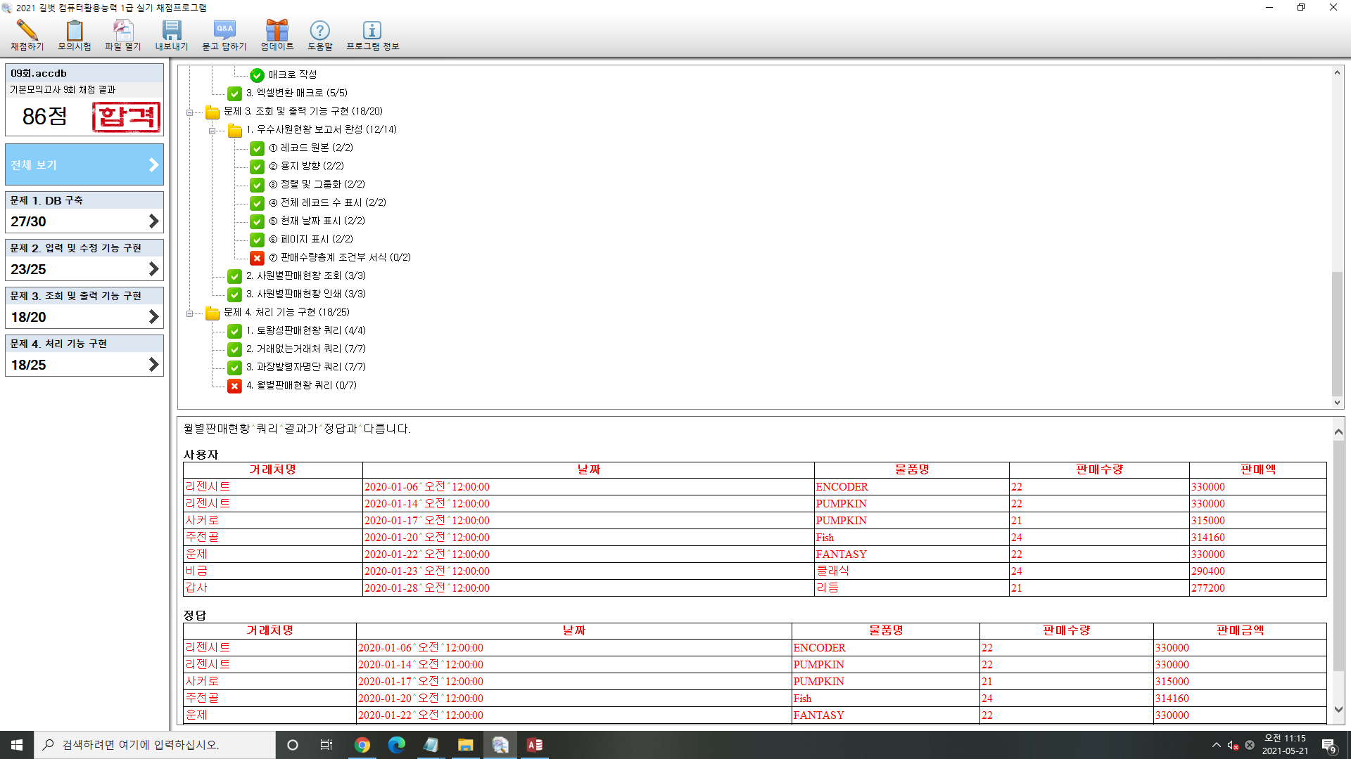 결과로 표시된 필드명 중 틀린 부분이 있네요. 판매액이 아닌 판매금액으로 수정해 보세요.
