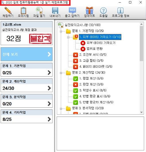 사용중인 채점프로그램이 2020으로 확인이 되고 있습니다.