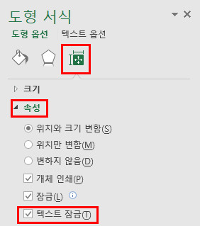 기본작업-2 문제(시트보호, 통합문서보기)에서 도형의 텍스트 잠금을 해제하라고 문제에 지시되어 있는데,