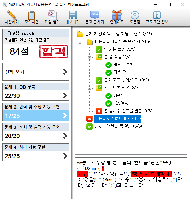 =Dsum("시수","봉사내역입력","학과='회계학과'") 부분