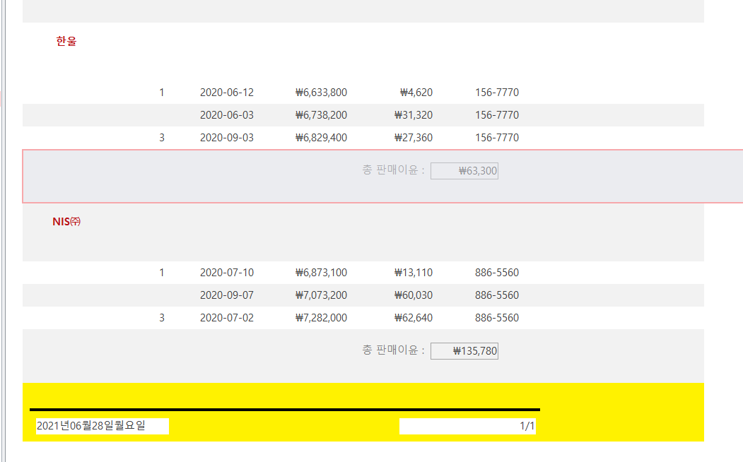 1. 인쇄미리보기로 열면 정상적으로 나옵니다. 두번째 페이지도 인쇄미리보기로 보셔야 합니다.