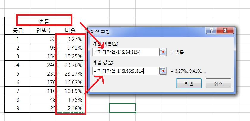 차트 수정 문젠데 '법률' 계열을 추가하라고 해서 데이터 선택을 통해 추가하려고 했는데 단일 행, 열 또는 셀이어야한다는 창이 뜨더라구요. 어떻게 이 '법률' 계열을 추가해야하는지, 범위를 어디로 잡아야하는지 모르겠습니다.