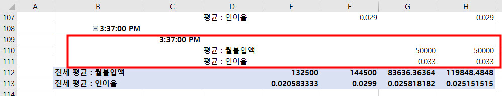 해설에 오후를 그룹 영역으로 지정할 때 b64 ~b108로 되어 있는데 제가 실제 풀이하니 b66~ b137 범위로 되어있던데... 무슨 문제있는 건가요?