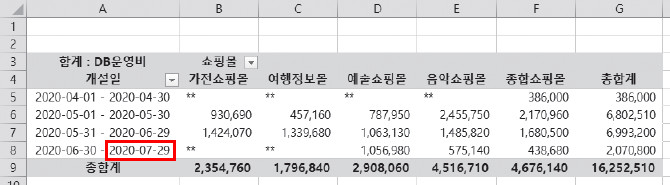 개설일 필드를 그룹할 때 저는 시작을 2020-04-01로 하고 끝을 2020-07-29로 했는데