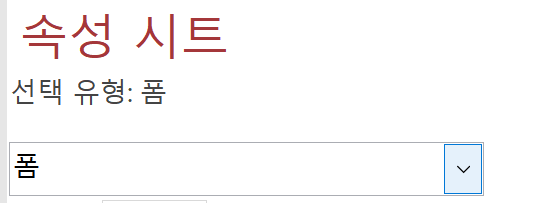 엑세스 문제를 풀 떄 디자인보기에서 해당 부분을 더블 클릭하면 속성시트가 뜨고 선택유형 아래에 해당 영역의 이름이 떠야하는거 같은데 저는 폼이라고만 떠요