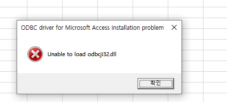이전까지는 잘 사용되다가 오늘 엑세스 채점 때문에 accessdatabaseengine 드라이버 설치 이후에 갑자기 외부데이터 불러오기에서 오류가 나네요..