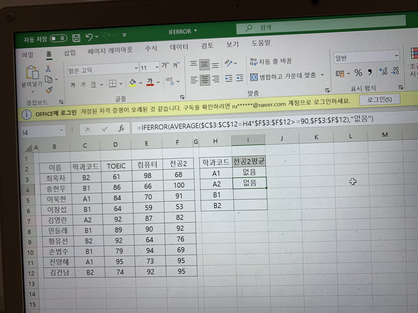 3. Average 함수는 조건을 넣을 때, 꼭 IF 함수를 이용해 주셔야 합니다.