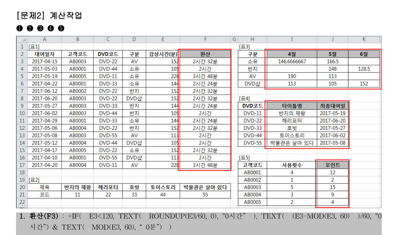 캡쳐한 그림과 비슷한 문제가 출제되어서 제시된 함수를 이용하여 수식을 작성하셨는데. 감점이 되어 상공회의소에 문의를 해 보니...