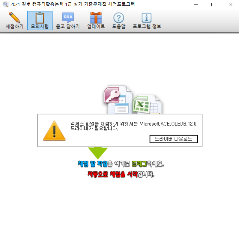 채점프로그램 다운해서 실행해보면 엑셀은 바로 되고