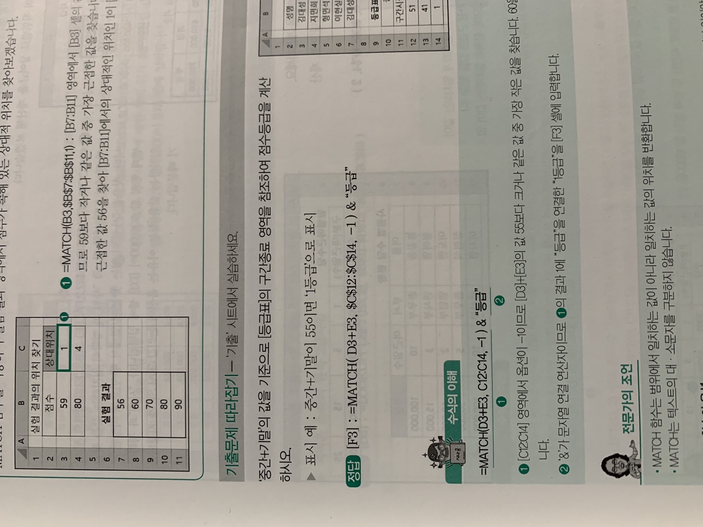 문제에서 MATCH함수를 사용하시오 이랬는데 MATCH,SUM함수를 쓰면 감점이되는지 궁금해요