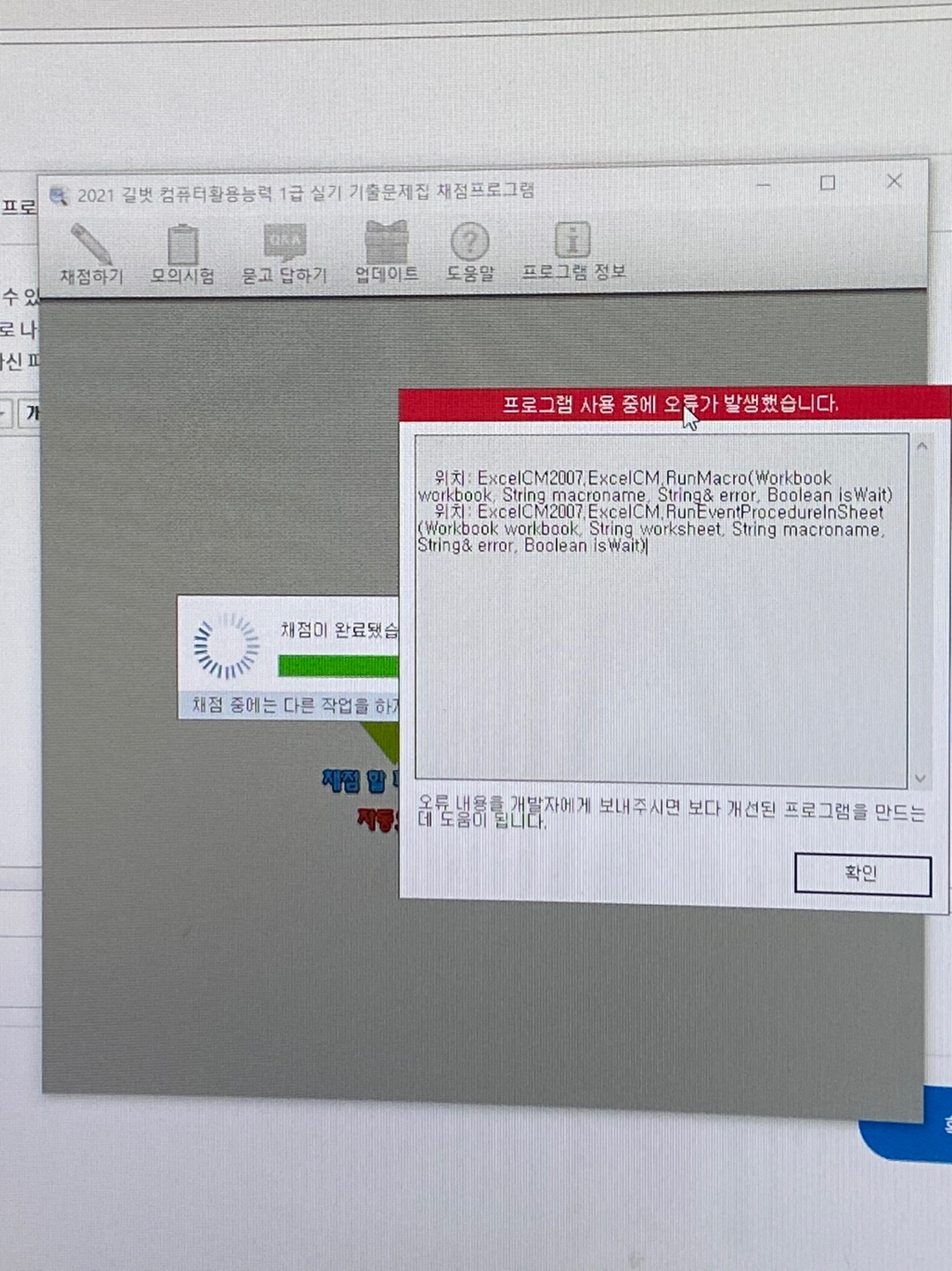 아울러 첨부하신 오류는 윈도우 환경 문제로 비쥬얼 베이직 쪽에서 오류가 발생한 것으로 보여집니다.