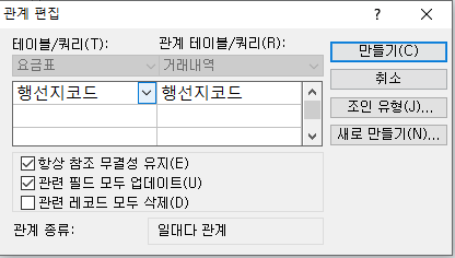 컴활1급 실기 액세스 기본모의고사 관계설정시 문제