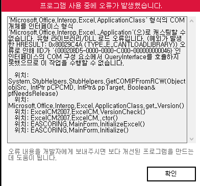 채점 프로그램 실행할 때 이런오류가 뜨는데 어떻게 해야 하나요?