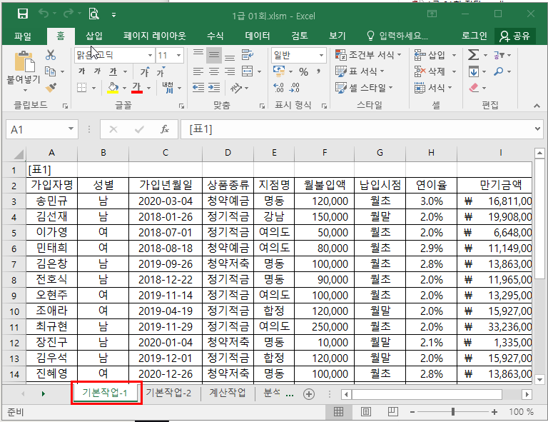 기본작업-1 시트가 전부 비어있어요