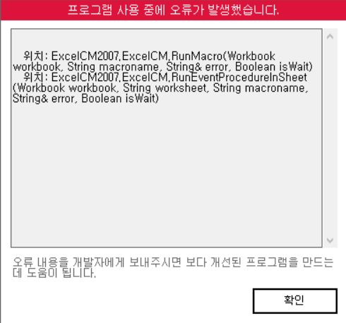 문의하신 오류는 윈도우 환경 문제로 비쥬얼 베이직 쪽에서 오류가 발생한 것으로 보여집니다.