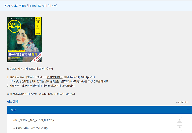 아래 그림과 같이 자료실-> 실습자료 에서 컴퓨터 활용능력 1급만선택한 후
