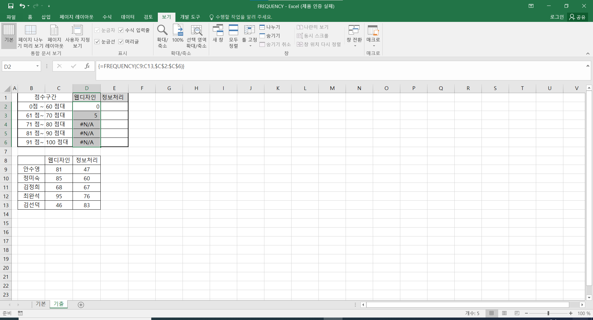 =TEXT(FREQUENCY(F3:F10,F14:F18),"0개")
