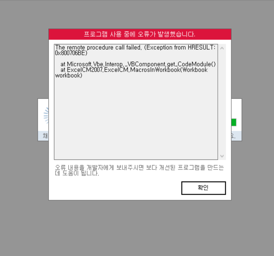 0x800706be 오류는 윈도우 환경 문제로 비주얼 베이직 쪽에서 오류가 발생한 것으로 보여집니다.