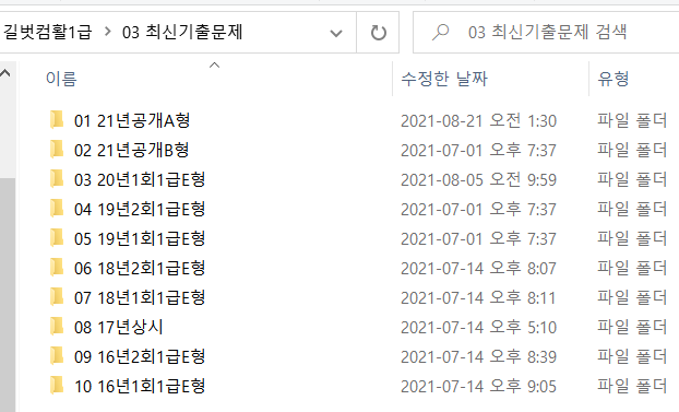 위 사진과 같이 시나공에서 제공한 실습파일에 최신기추문제파일에 16~18년 문재지만 있고 21년,20년,19년 pdf문제지가 포함되어있지않은데 어떻게 다운받아야하나요