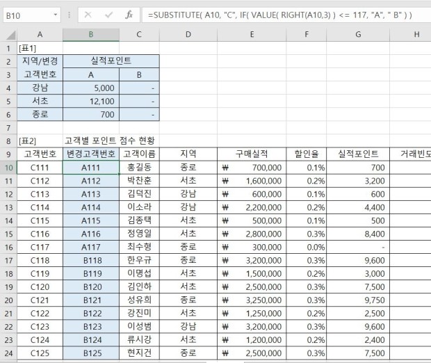 (1) =IF( VALUE( RIGHT(A10,3) )<=117, SUBSTITUTE( A10,"C","A" ), SUBSTITUTE( A10,"C","B" ) )