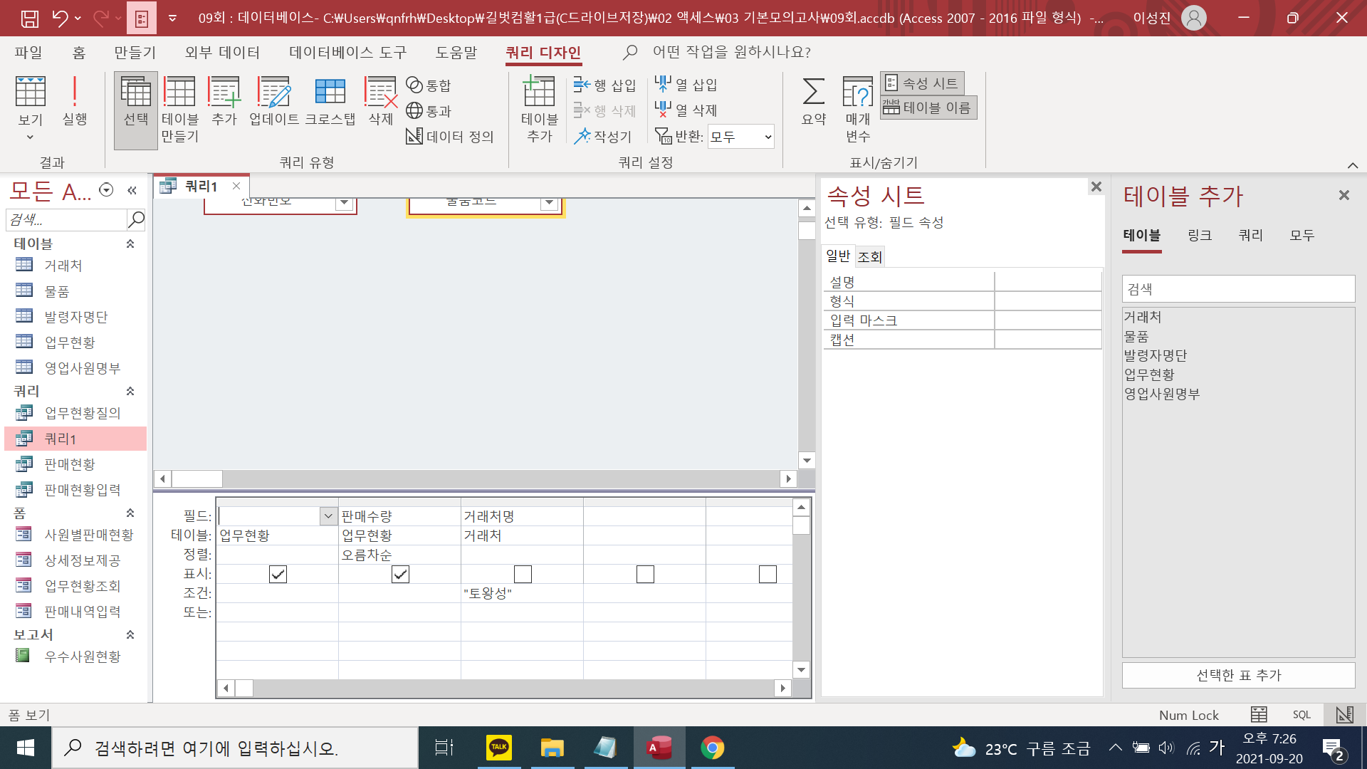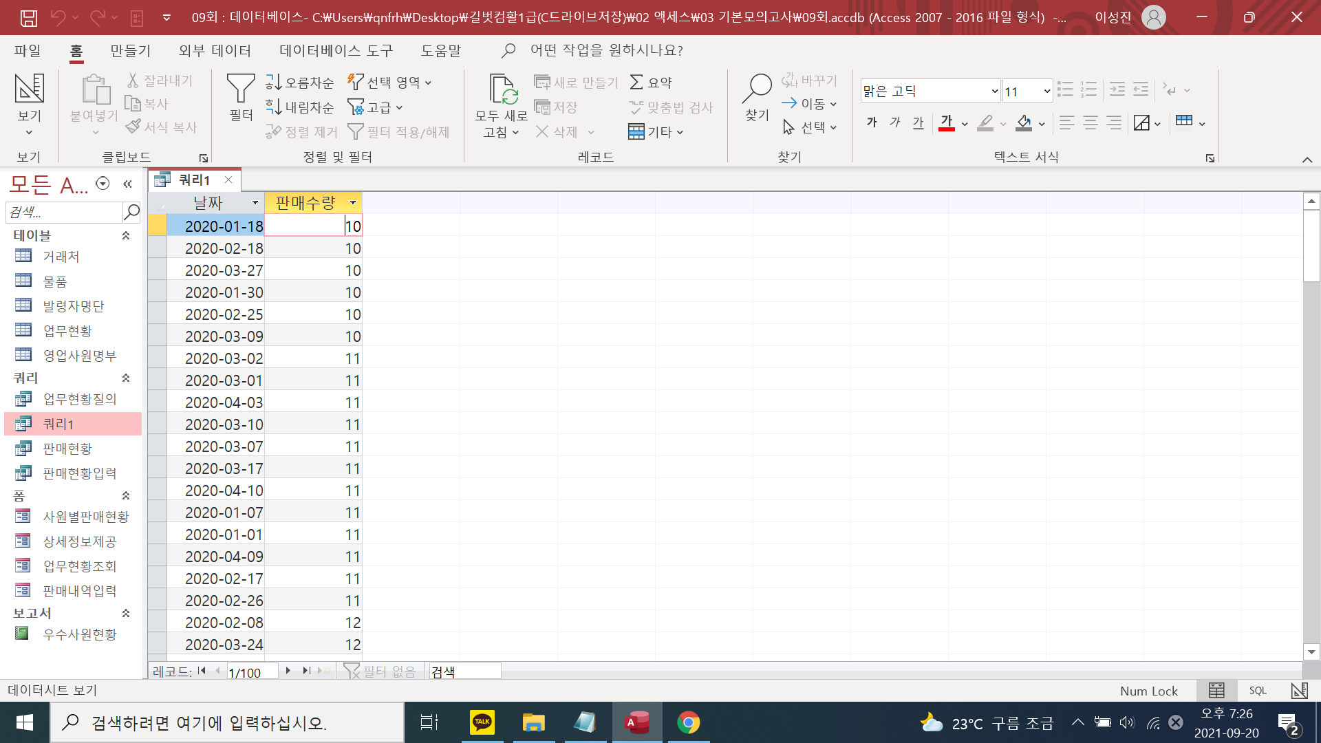 2021 시나공 컴퓨터활용능력 1급 실기