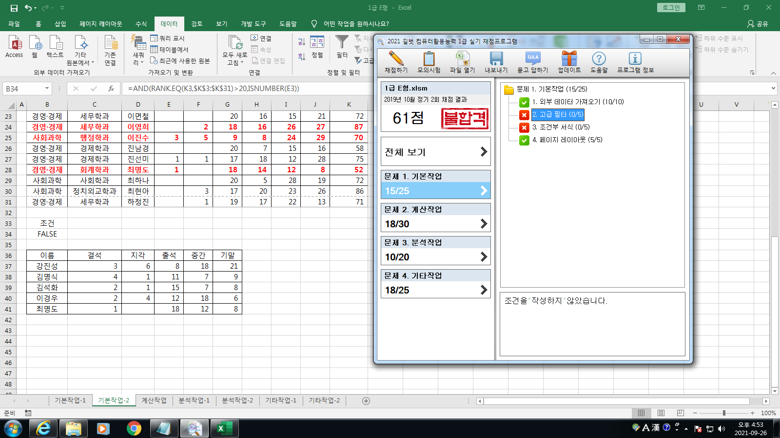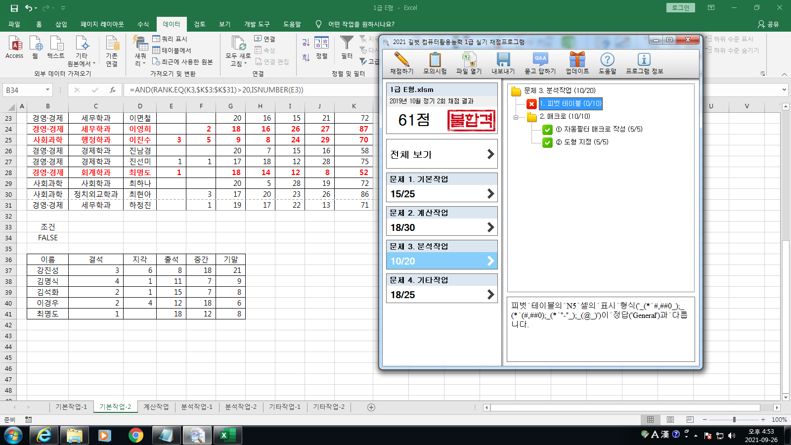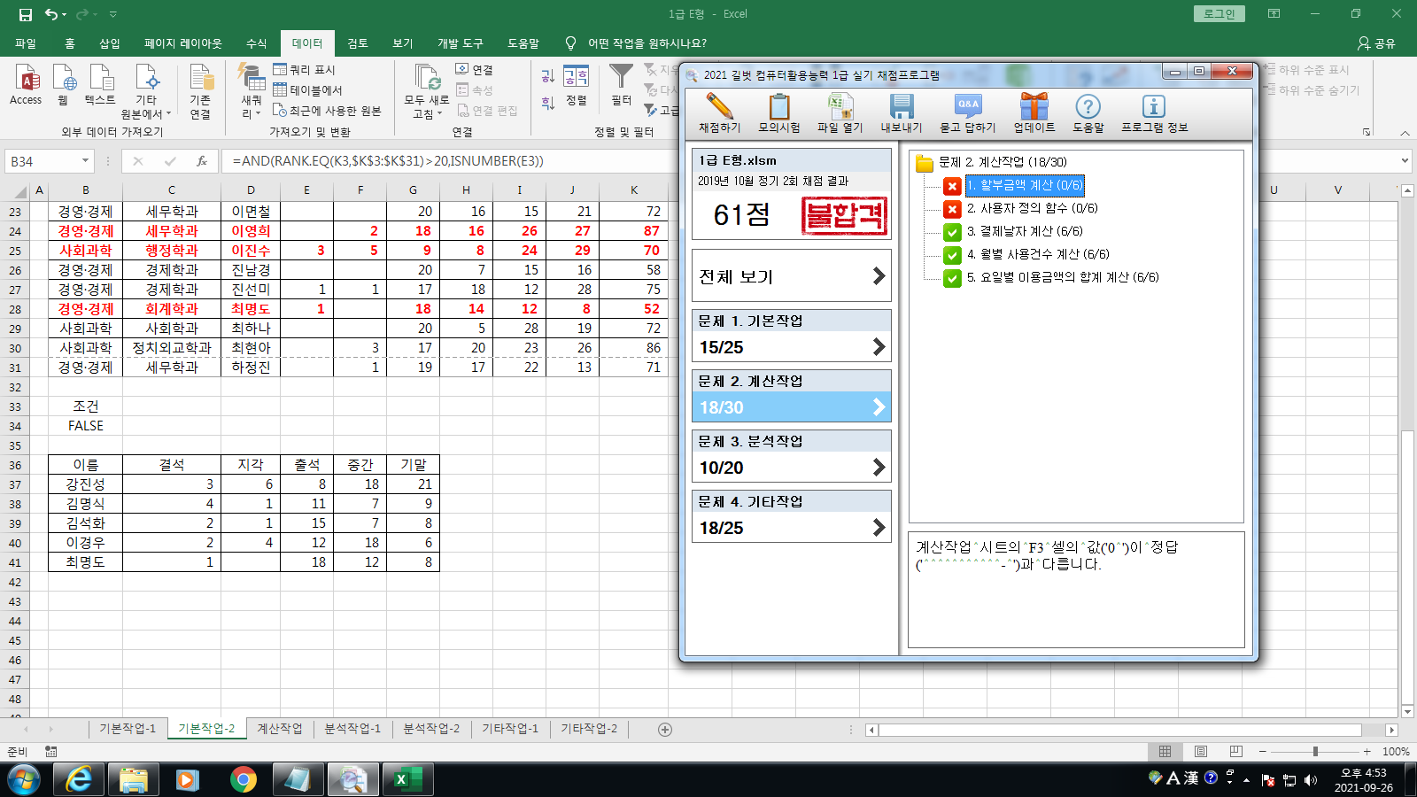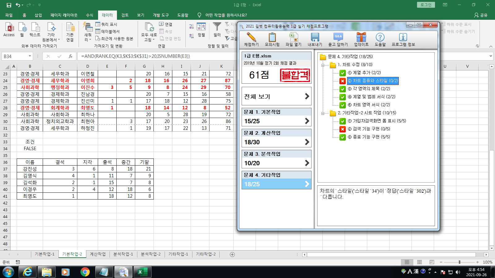 최신기출문제 2019 2회 E형 엑셀 채점 프로그램 이상