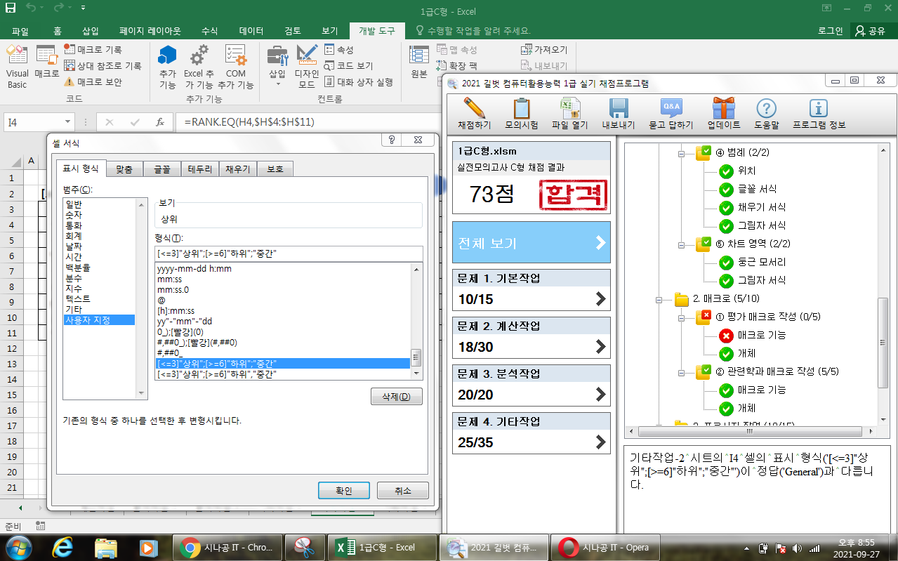 메크로 문제에서 제가 설정한 서식이 맞지 않나요? 문제와 답지에는 맞게 되어있는데 채점 프로그램을 돌려보니 general과 다르다고 나오는데 어떤 부분이 틀린건가요? general과 다르다는게 어떤 의미인지 알 수 있을까요?