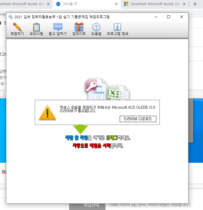 액세스 채점하려는데 이렇게 뜨길래 공지보고 설명대로 했는데도 안됩니다.