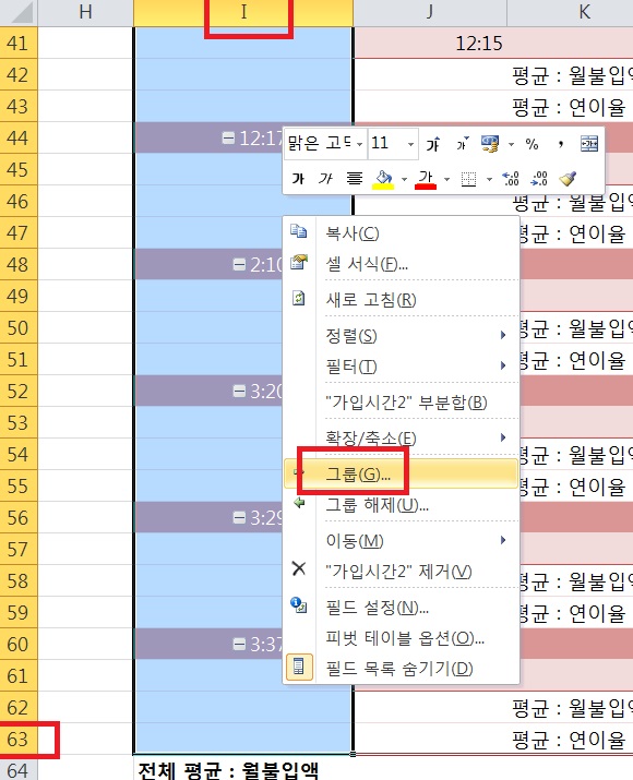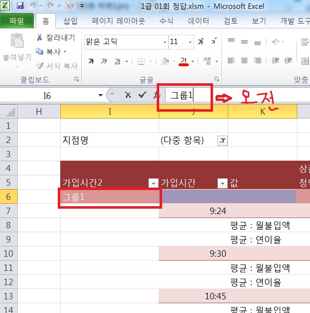 주문시간을 오전/오후로 그룹화하라고 되어있는데 저는 일단필드에 주문시간은 분만 표시되고 시가 별도로 표시가 되어요 ㅠ