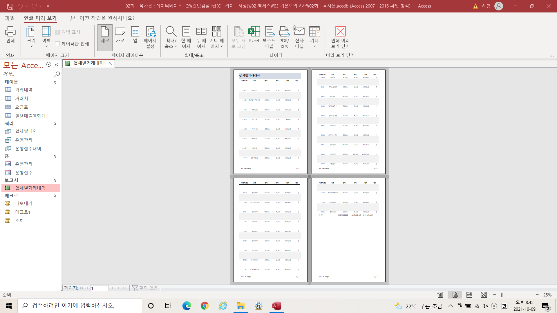 [컴활1급 2권 p313] p313처럼 한 페이지에 자료가 나오게 하고 싶습니다.