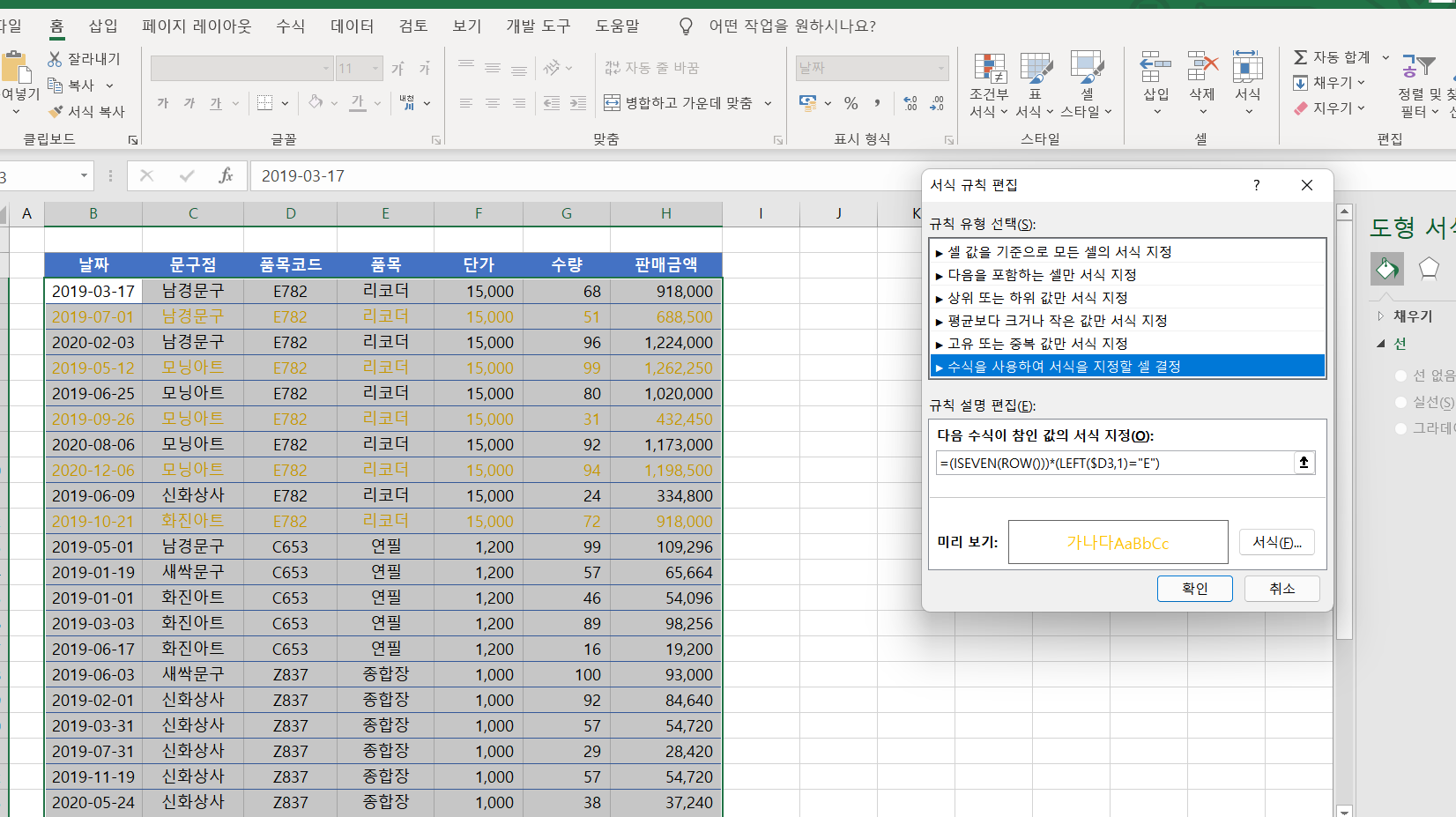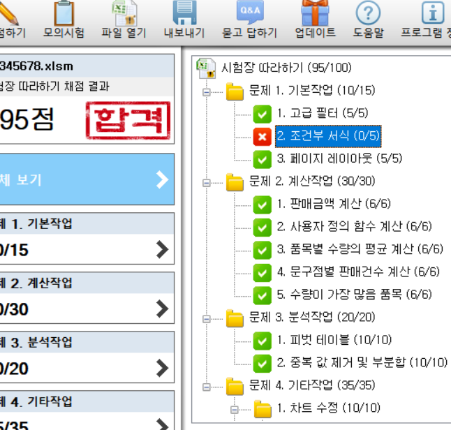 답안지처럼 입력을 했는데도 불구하고 프로그램에서는 조건부서식이 자꾸
