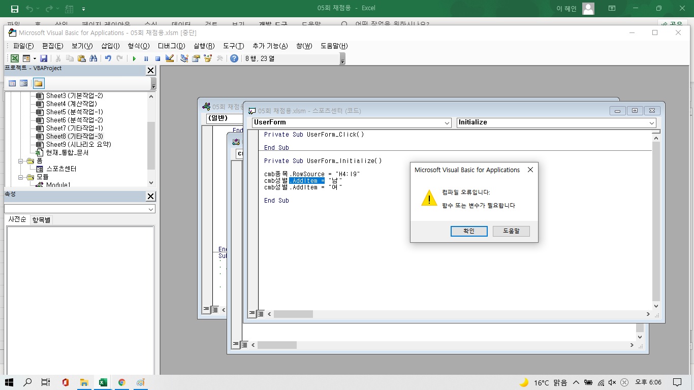 답안지와 똑같이 작성했는데 매크로 오류가 나요ㅠㅠㅠㅠㅠㅠㅠㅠ