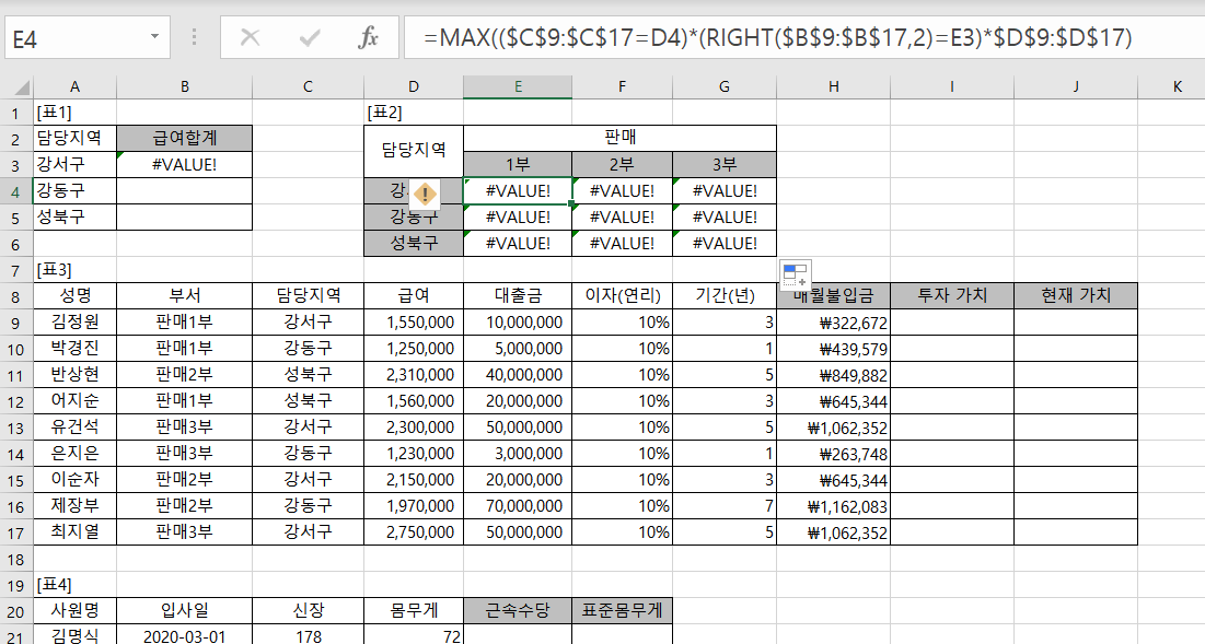 답지와 똑같이 수식 적었는데 Value가 나옵니다.