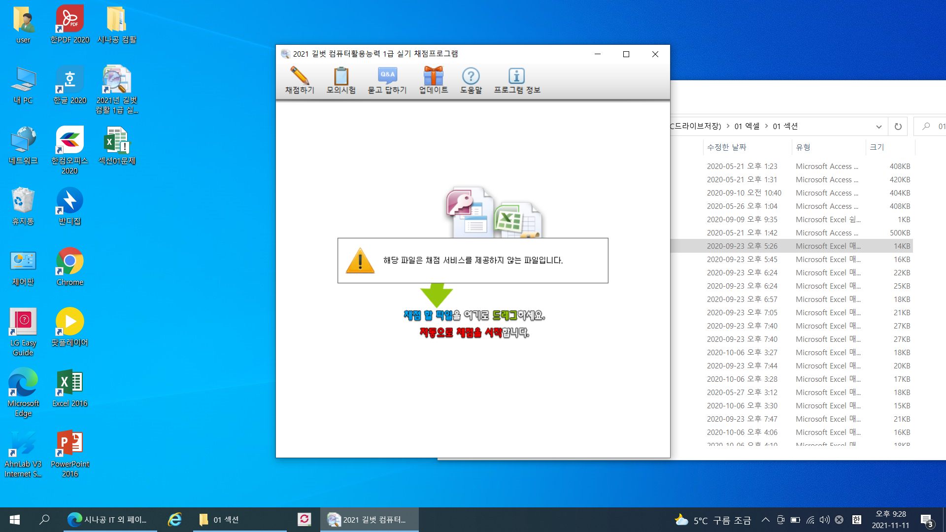 채점프로그램 오류로 시작도 못하고 있습니다... -_-;;; 섹션1의 문제를 풀고 채점프로그램에 넣었는데, '해당파일은 채점 서비스를 제공하지 않는 파일입니다'