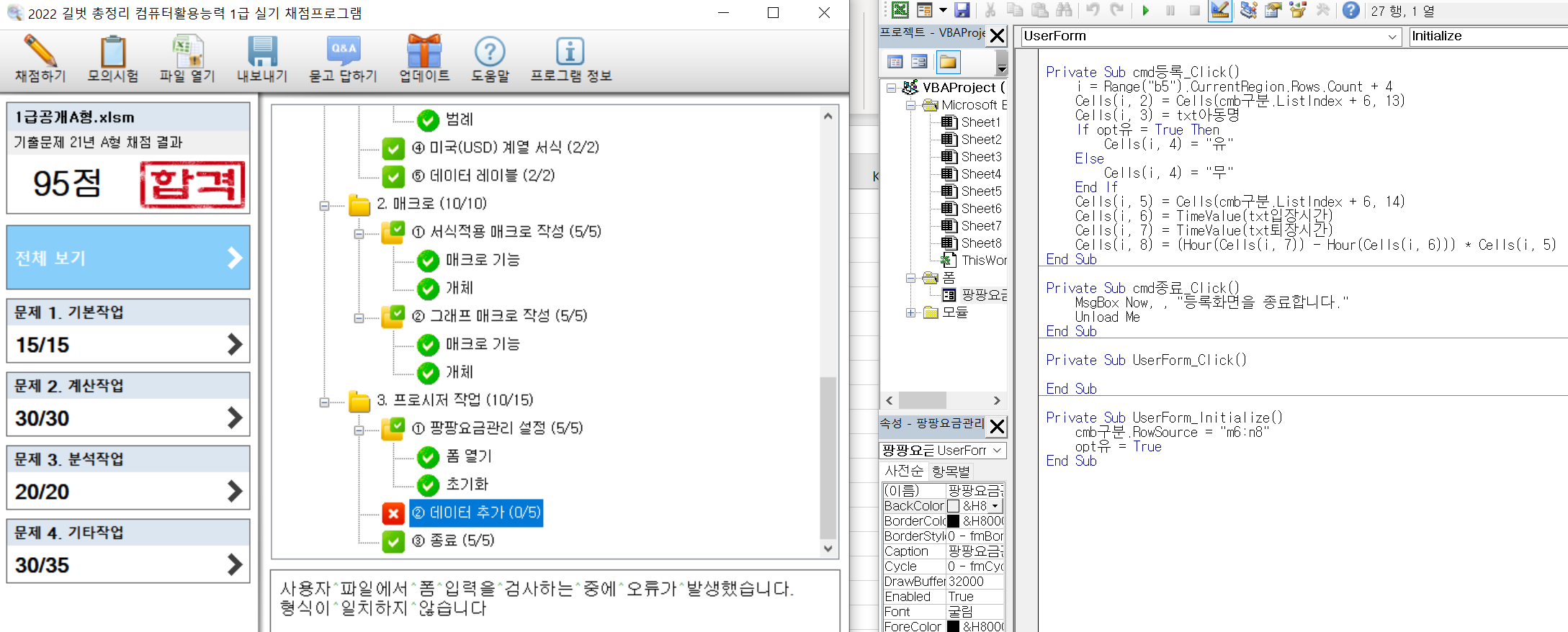 저희 채점 프로그램상의 문제인 듯 합니다. 프로시저 부분은 문제의 지시사항을 모두 만족하고 정상적으로 실행되면 교재와 달라도 실제 시험에서는 모두 맞는 것으로 채점됩니다.