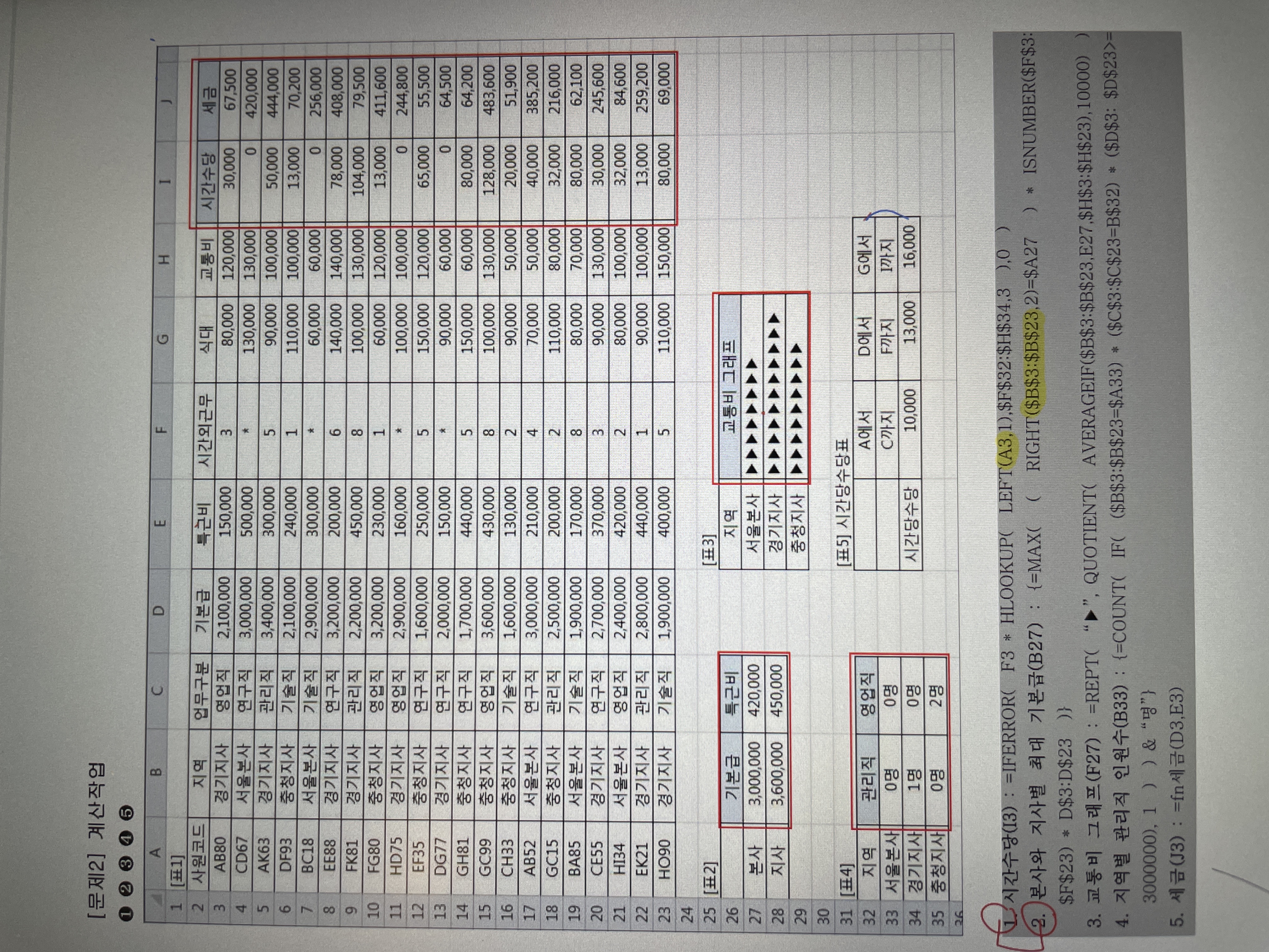 엑셀 2파트 계산부분