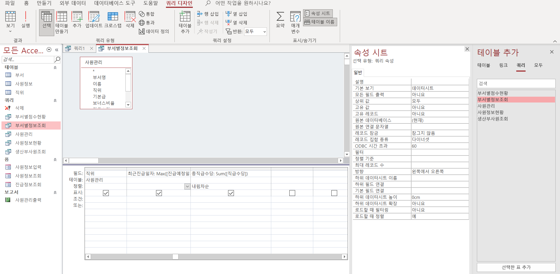 필드명에 각각 "최근진급일자:max([진급일자])" 와 "총직급수당:sum([직급수당])" 을 작성하여 풀면 오류가 나는 이유는 무엇인가요?