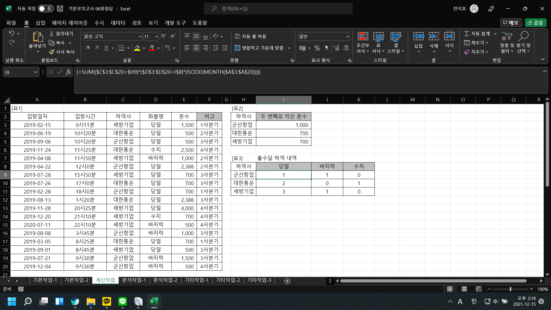 셀 서식을 일반으로 지정한 후 확인 해 보세요.