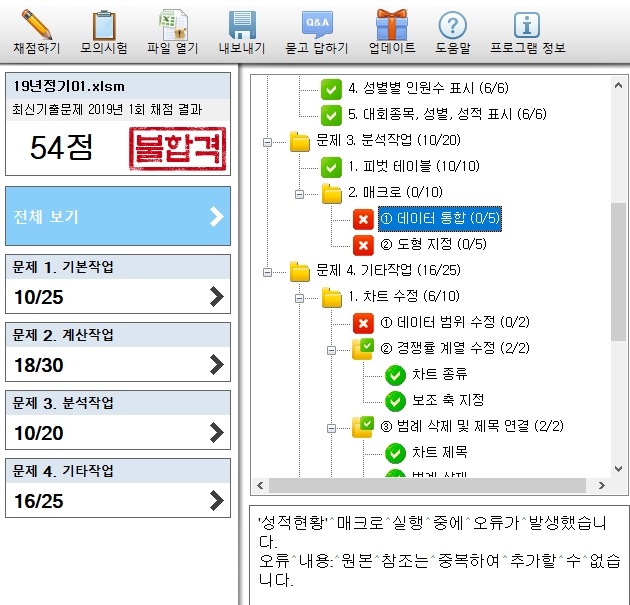C>컴활1급> 기출문제.. 에 들어가 모의고사 3~4회에 걸쳐 데이터 통합 매크로(분석작업2)를 하다보면, 공통적으로 아래 오류가 나옵니다.