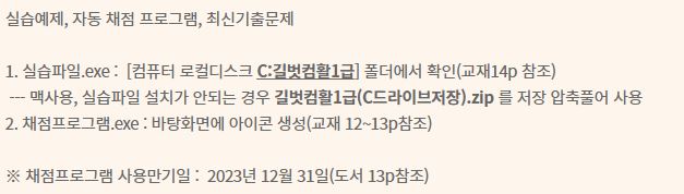 > 다운받으신 파일 중에서 '실습파일.exe', '채점프로그램.exe' 파일만 더블클릭하여 설치해 주시면 됩니다.