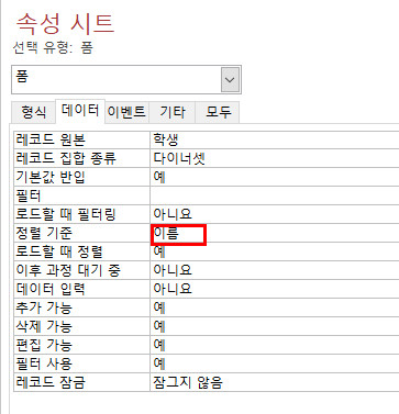해당 폼의 폼 선택기를 더블클릭한 후 '속성 시트' 창에서 정렬 기준에 지정된 '이름'을 삭제해 주세요. 그러면 폼이 정상적으로 실행됩니다.
