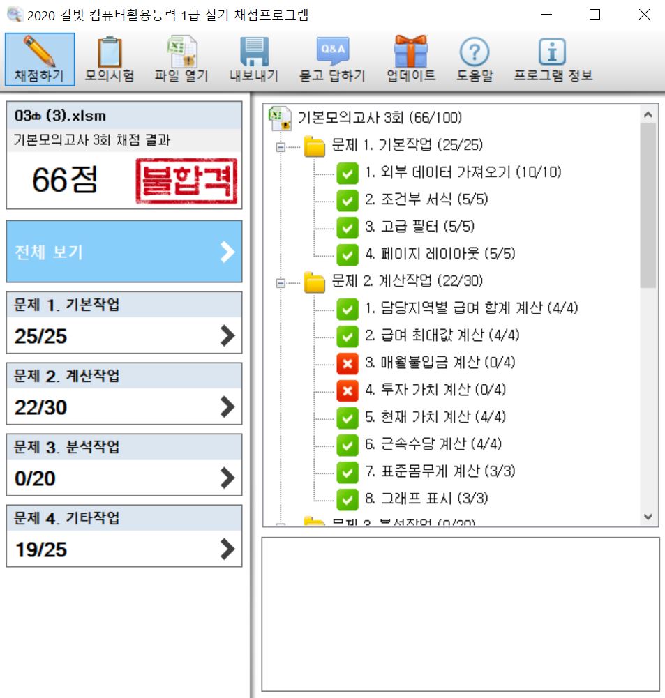 2020 시나공 기본서 1권 스프레드시트 실무에 있는 기본모의고사 3회를 작성하였습니다.