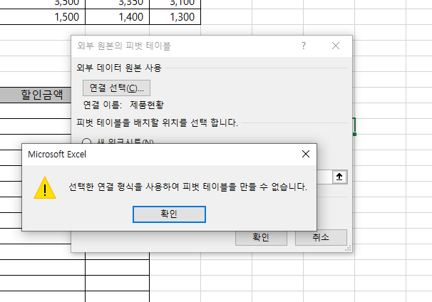 외부데이터 원본에서 로 txt파일을 가져온 후 피벗 테이블을 만들려면 오류 메세지가 뜹니다.