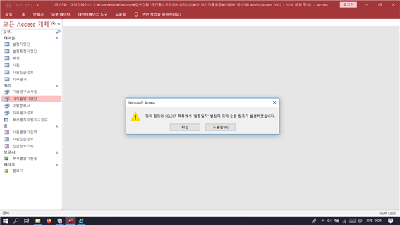 작성하신 액세스 파일 자체를 올려주세요. 저희쪽에서도 열어봐야 정확한 답변이 가능합니다.