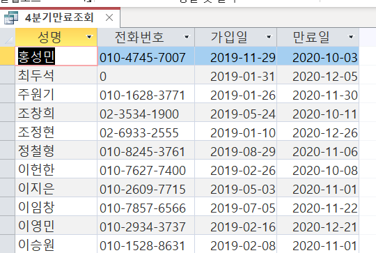 최두석 레코드의 전화번호가 중간에 수정된 것은 아닌가 싶네요. 결과만 봐서는 어디서 수정된 것인지 알기는 어렵습니다. 정답 파일을 열어서 전화번호를 입력해주세요.