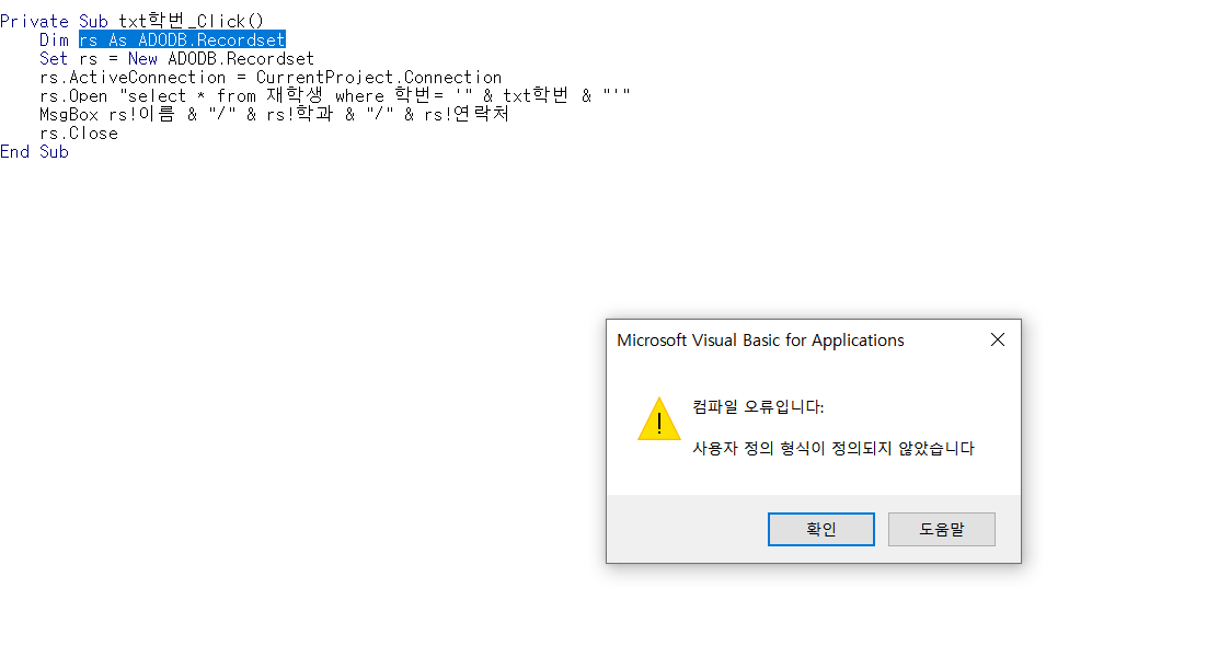 엑세스 사용자 정의 형식이 지정되지 않았습니다. 오류를 어떻게 해결하나요?