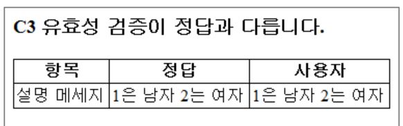 3. 유효성 검증이 정답과 다르다고 아래 사진과 같이 정답과 제가 입력한 답이 나오는데 똑같이 입력했는데 왜 다르다고 나오는 걸까요?