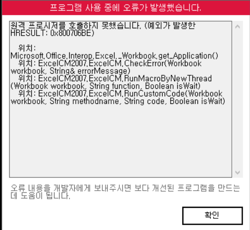 **아울러 해당 오류는 윈도우 환경 문제로 비주얼 베이직 쪽에서 오류가 발생한 것으로 보여집니다.