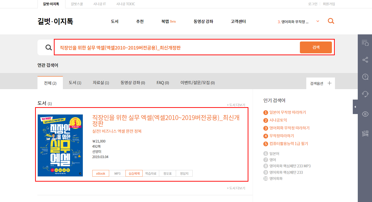 1. 길벗 홈페이지 검색창에 '도서명' 으로 입력한 후 검색되는 도서를 선택합니다.