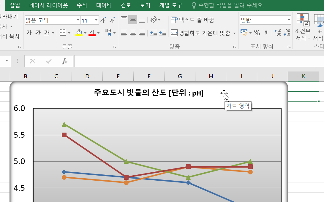 차트가 선택되지 않은 상태에서 차트를 한 번 클릭하시고,